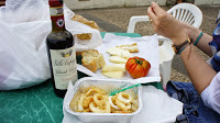 1 saatlik bir otobüs yolculuğundan sonra Greve in Chianti’ye ulaştık. Köye vardığımızda hava çok güzeldi, hemen köyün merkezine doğru ilerledik. Köy meydanına geldiğimizde bira pazar kurulmuş olduğunu gördük. İlk etapta biraz canımız sıkıldı çünkü en güzel fotoğrafları çekeceğimiz meydan pazar çadırları ile doluydu. Hemen ortama uyup alışveriş yaptık sonra da köyün üst taraflarına doğru yürüyüp, tam bir sessizliğin içinde küçük bir piknik yaptık. Ekmek doğal, domates hormonsuz, peynir mükemmel, şarap harikaydı.