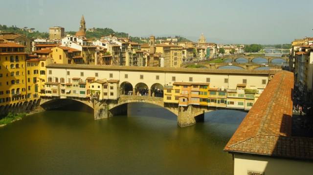 Ufizzi müzesinden Ponte Vecchio köprüsü ve Arno Nehri |