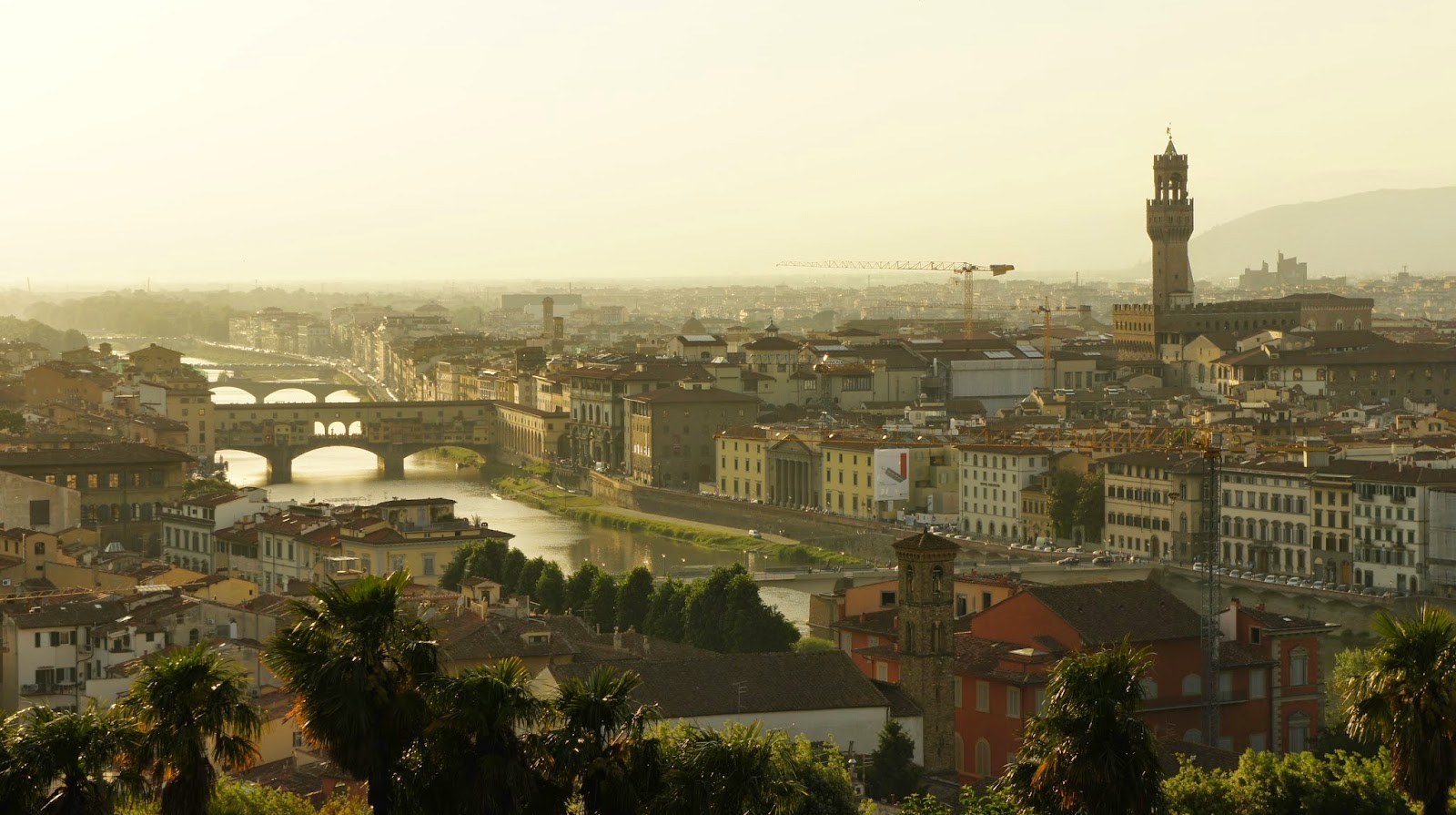 Michalengelo tepesinin dışında, Floransa’nın dar sokakları ve eski binaları ara